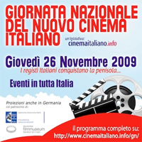 Si terrà giovedì 26 novembre la prima Giornata Nazionale del Nuovo Cinema Italiano, promossa da CinemaItaliano.info, in collaborazione con i cineclub italiani più attivi, e con il patrocinio in Germania dell’Istituto Italiano di Cultura di Berlino e del Deutsches Filmmuseum di Francoforte.
