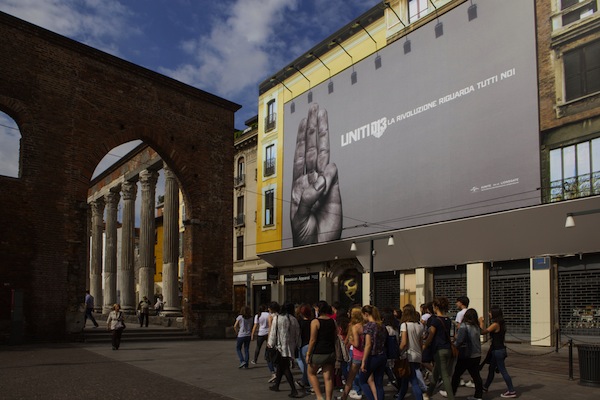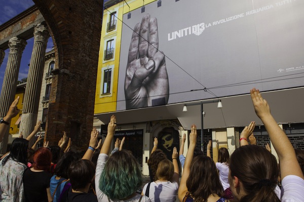 Il 17 giugno, in oltre 25 location in tutto il mondo, l’iconico “saluto con le tre dita” della saga di Hunger Games è comparso in una serie di affissioni, edifici e luoghi prestigiosi come Times Square a New York, Westfield Centre a Londra, Colonne di San Lorenzo a Milano e Novy Arbat Avenue a Mosca per citarne alcuni.